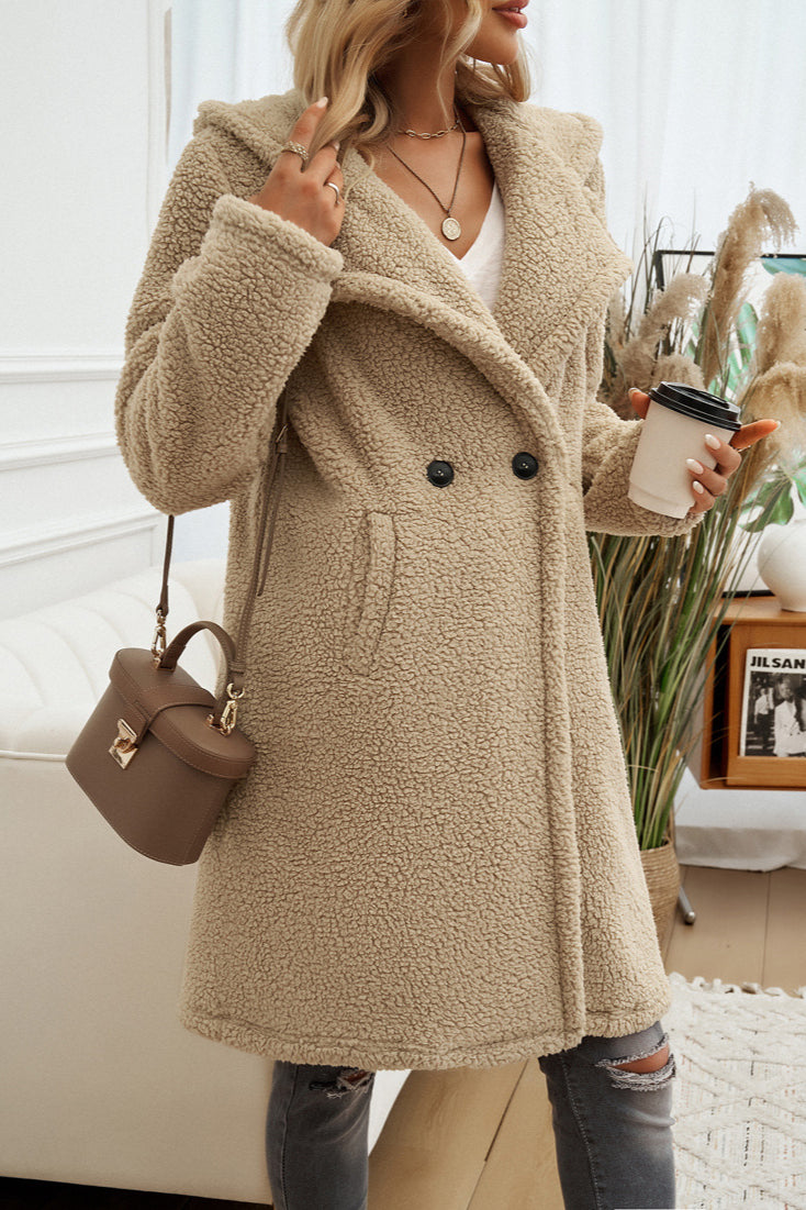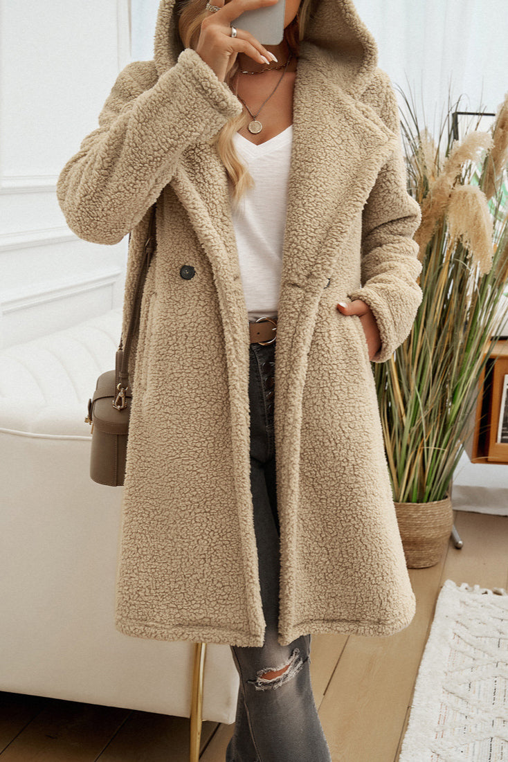 Dames Lange Teddy Jas met Capuchon voor Koude Dagen
