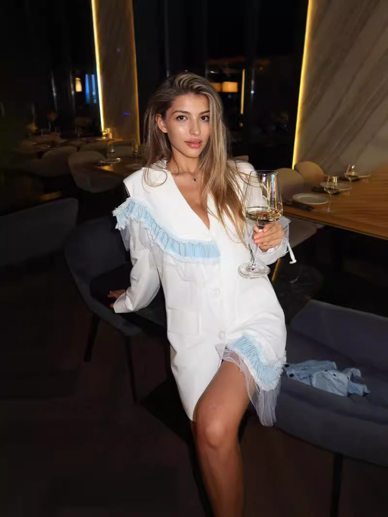 Slank Katoenen Kanten Stiksels Pak met Lange Mouwen en Reverskraag