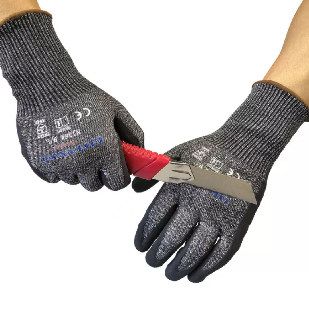 Ervaar de ultieme bescherming met onze Snijbestendige Werkhandschoenen, speciaal ontworpen om de hoogste veiligheidsnormen te voldoen in omgevingen waar snijgevaren een constante dreiging vormen. Deze handschoenen combineren HPPE (high-performance polyethyleen) en glasvezel voor ongeëvenaarde snijweerstand, terwijl de nitril gecoate palm zorgt voor uitstekende grip en duurzaamheid.