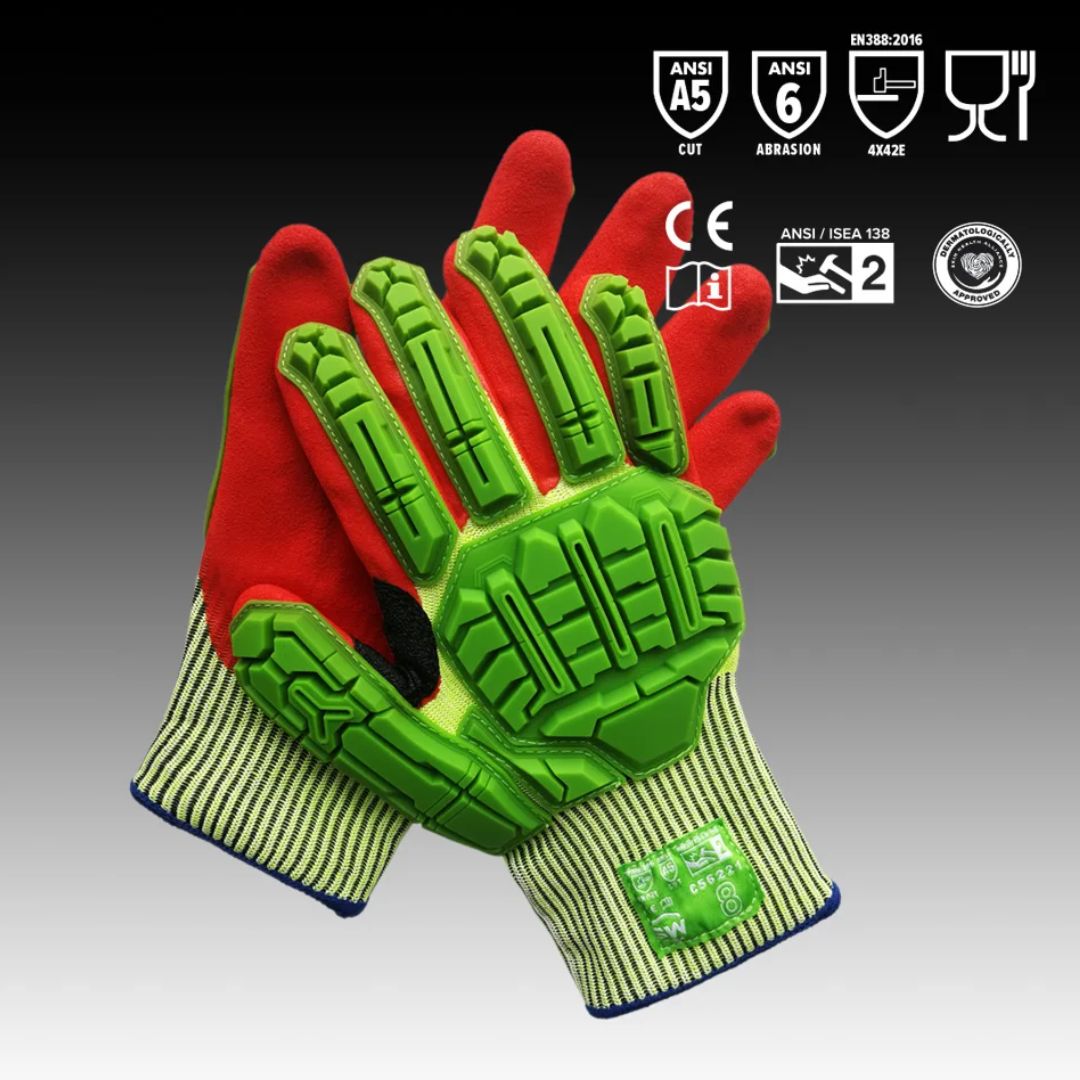De geïntegreerde slagvastheid beschermt je handen tegen mechanische risico's, terwijl de snijbestendigheid zorgt voor een betrouwbare bescherming tegen sneden en schrammen. Deze eigenschappen maken onze handschoenen essentieel voor sectoren zoals bouw, metaalbewerking en houtbewerking, waar veiligheid en duurzaamheid hand in hand gaan.